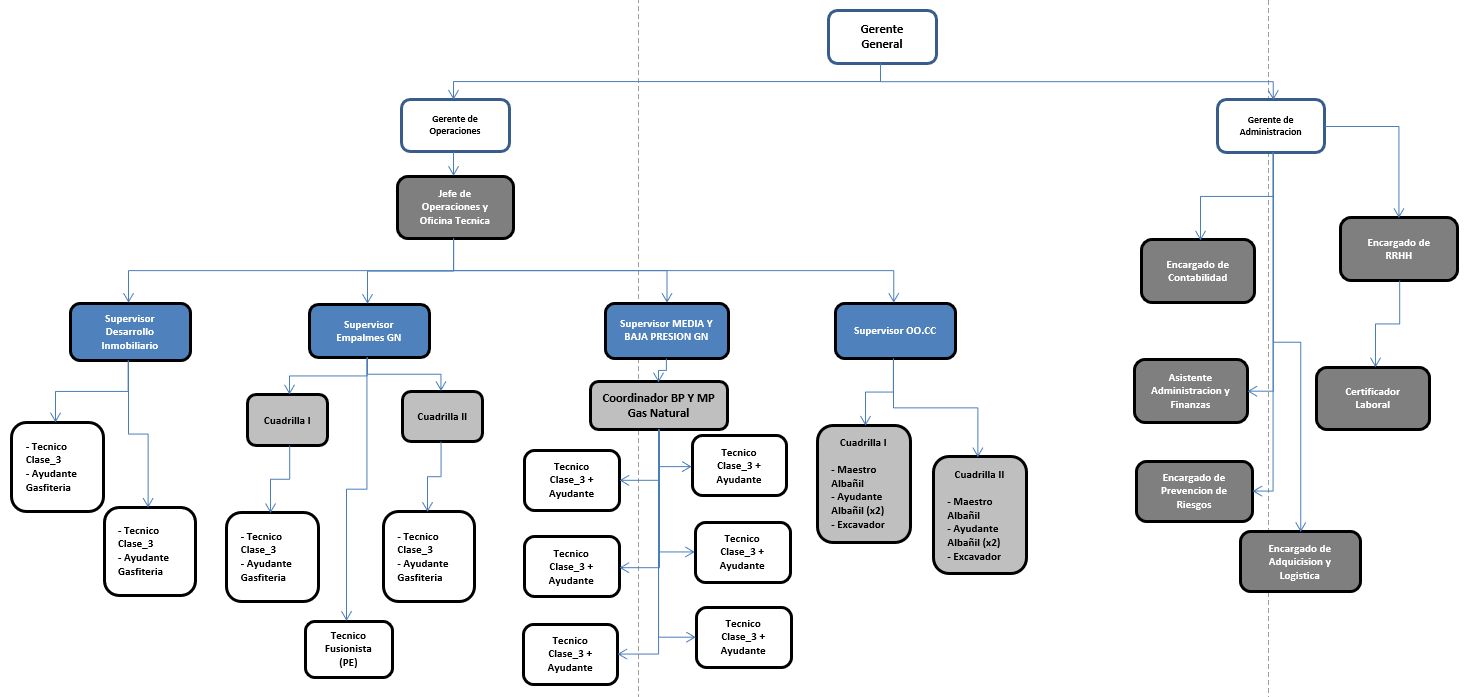 Lograr que nuestra empresa sea de referencia a nivel nacional entre empresas de distribución de gas, como también, en aquellas de edificación, con una activa participación en el desarrollo de la infraestructura del país. Siempre caracterizada por un alto compromiso con sus clientes, manteniendo los más exigentes estándares de calidad y seguridad, respetando el medio ambiente y velando por el crecimiento de su equipo humano y de la comunidad en donde desarrolle sus actividades.